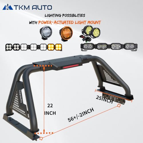 TKMAUTO Sport Bar Roll Bar Fit Toyota Tacoma, Ford Ranger, Chevy Colorado, GMC Canyon, and Nissan Frontier (Black Steel)